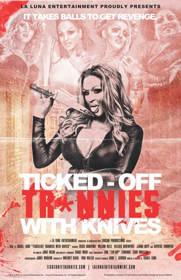 Ticked-Off Trannies with Knives had its local premiere at the Roxie last night as part of Another Hole in the Head. While the title's offensive and the film drew protests when it was screened at the Tribeca Film Festival, the large audience who turned out for the screening gave last night responded with a loud and enthusiastic response. This reaction wasn't held until the end of the film either as rather a sizeable portion of the audience was having a Rocky Horror time of it talking back to the screen pretty much during the entire duration of the film. I was sitting too close to the screen to hear many of the comments from one lone jokester, who kept cracking up most of the people seated in the rear of theater.